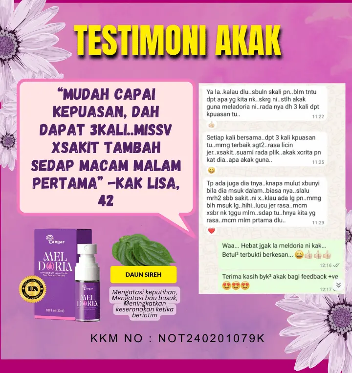 PALING PENTING TAK PERLU LAGI NAK BELI BANYAK PRODUK . BELI MELDORIA JE DAH BOLEH KONGSI LAKI-BINI